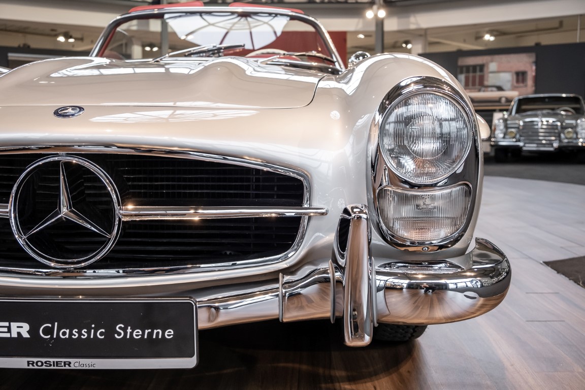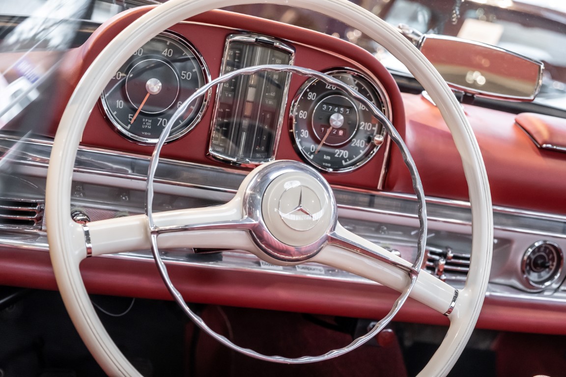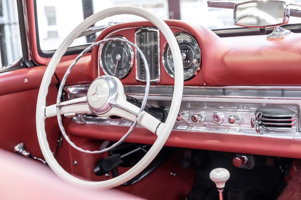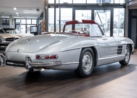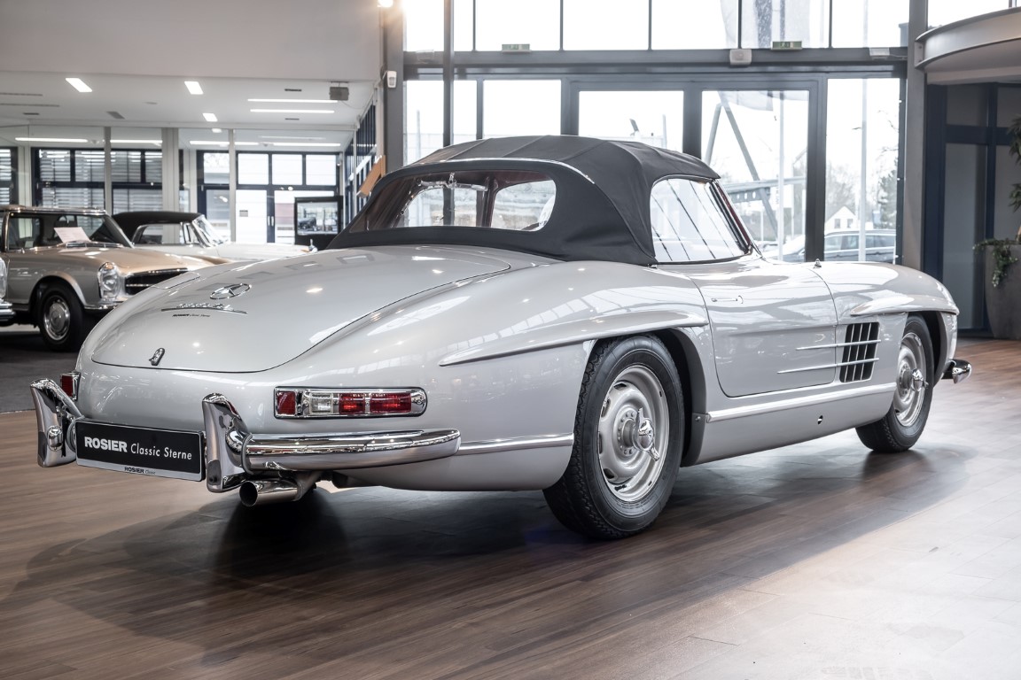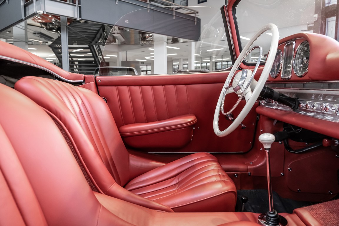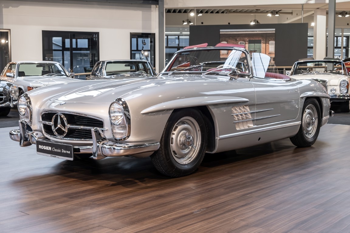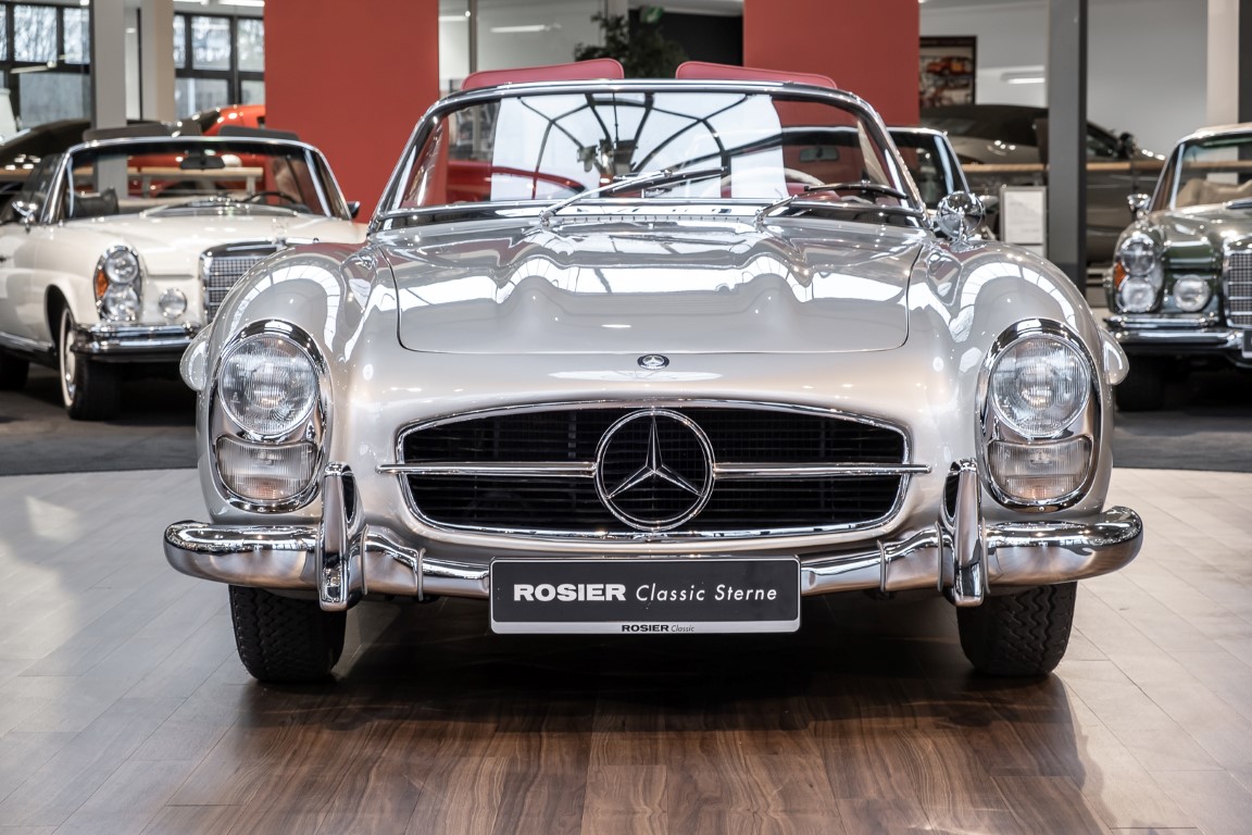 This Mercedes-Benz 300SL Roadster was completed in the factory on 9 December 1957 and made available for delivery to the customer. The first owner was the ROMA garage of Robert May & Sohn in the east of Frankfurt am Main. The car was subsequently sold to the USA. Bob Estes, a very well known car collector had brought it from Virginia in 1997 and included it in his collection. The documented speedometer reading at that time was 84,514 mls. Bob Estes hardly ever drove the car and handed it over to his son Dale Estes, who obviously did not find the time to drive the elegant roadster either. In 2001 the car was purchased by the renowned Mercedes classic expert Scott Grundfor in Kalamazoo Michigan. The excellent condition of the car and today's speedometer reading of only 84,983 indicates that the car has also undergone a major overhaul here. In 2001 the car went to Dr. Morton C. Wellington in Jacksonville/Florida, a lover and also collector of classic cars. Dr. Wellington is well known in the local classic car scene for his participation in top-class Concours events with his 1926 Rolls-Royce Piccadilly Roadster. 2012 the elegant 300SL Roadster was acquired by Richard Wolf, a respected history professor at the University of Santa Barbara. Afterwards the vehicle was added to an exquisite collection of exquisite individual pieces, from which the vehicle is now being sold. A uniquely beautiful matching numbers roadster in original paint and interior color scheme, equipped with rare Rudge hub caps. Do not miss it.