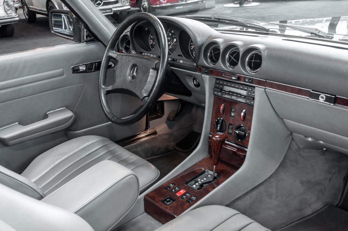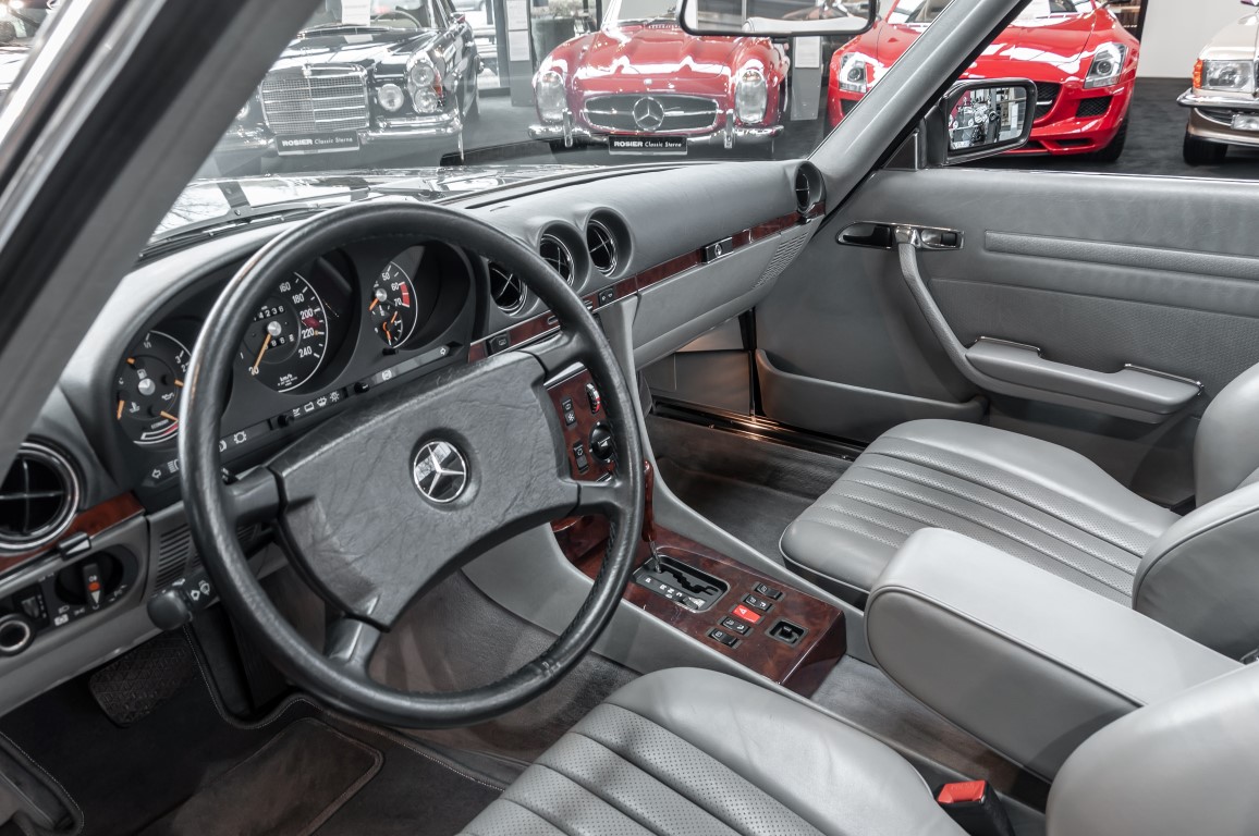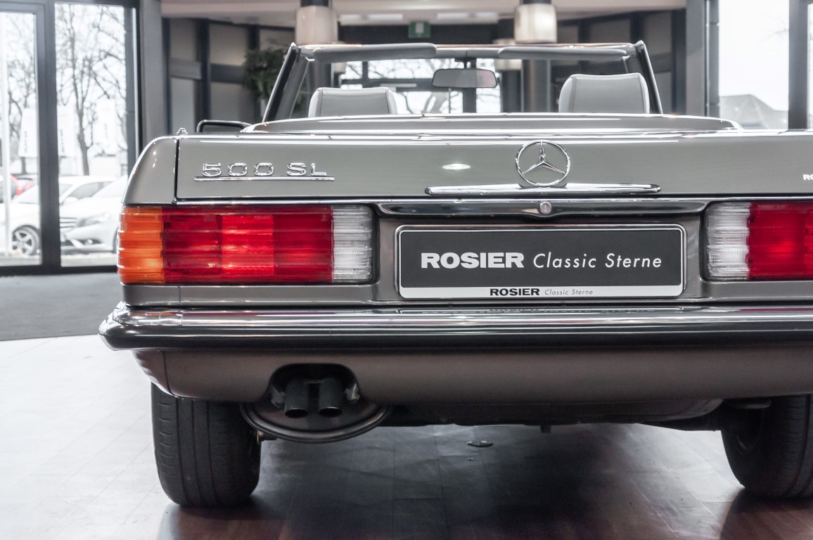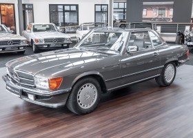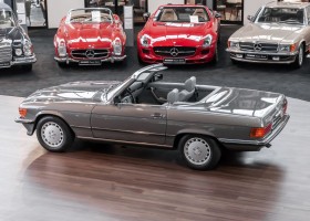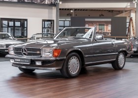 A real rarity: a 500 SL with original 14,500 kilometres. In 1987 this vehicle in noble anthracite grey metallic was delivered to the Munich branch, so it was built in German specification and was originally intended for the German market.
