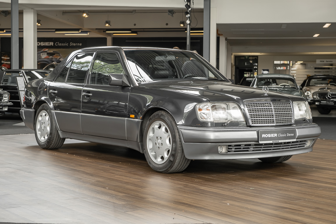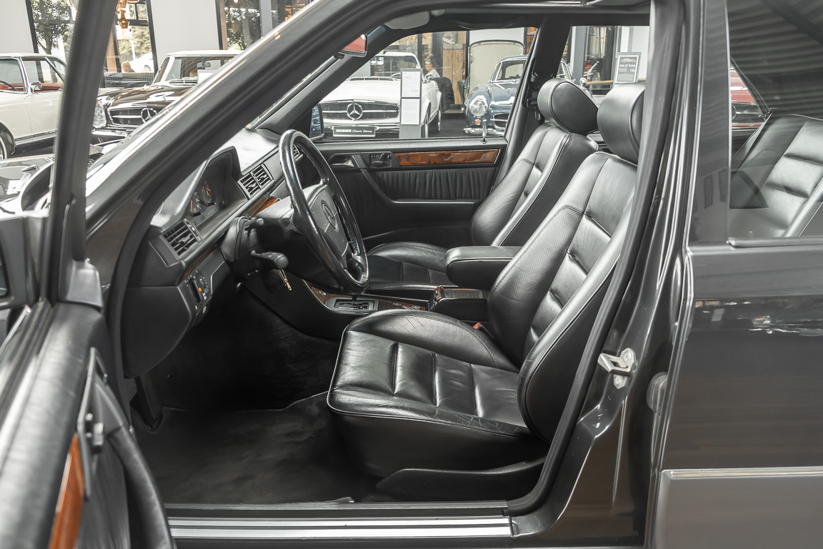 We are delighted to be able to offer you this unique Mercedes-Benz E500 from the W124 series. The vehicle reached Japan in the 1990s via the gray market, where it obviously lacked nothing and enjoyed the best care. Extremely long waiting times for the Japanese market prompted many Mercedes customers from Germany to sell their coveted vehicles to the Far East at a substantial profit. This was obviously also the case for the previous owner of this vehicle. The E500 has a German specification and is in absolute top condition with only 44,850 km on the odometer. An almost unused interior and fully functioning technology are evidence of the very best care. Wearing parts have been meticulously checked and replaced over the years and decades. In the course of sealing measures on the engine in our factory, we decided - in accordance with the condition of the vehicle - to carry out a complete overhaul of the engine, which now corresponds to the unused condition of the entire vehicle. An absolute rarity among the 500 models of the 124 series on offer.