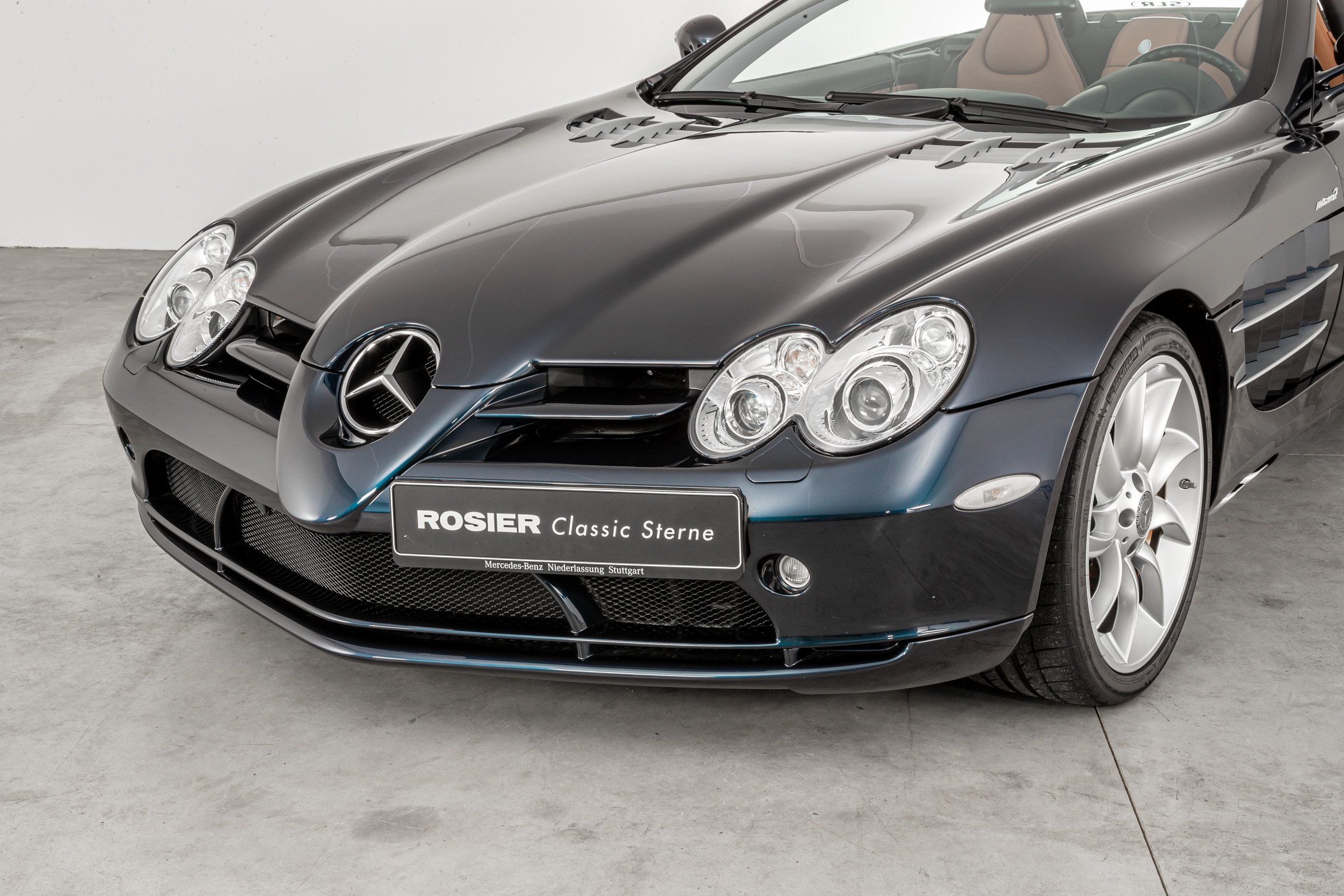 Fantastic exceptional Mercedes-Benz SLR Roadster in rare color combination (Crystal Blue Metallic/Leather Silver Arrow Beige), German second-hand vehicle with only 3,100 km and VAT certificate, absolute collector's item