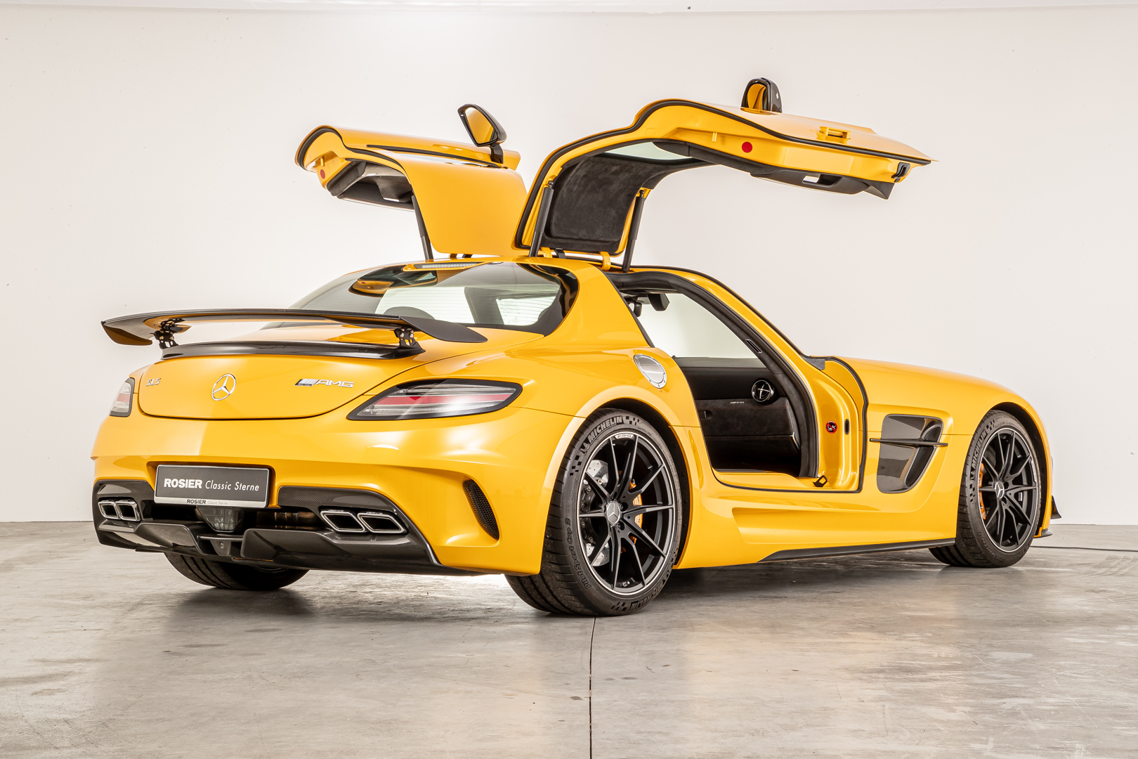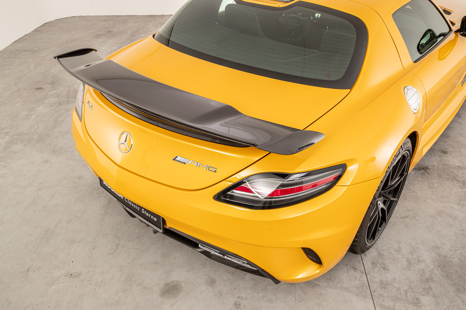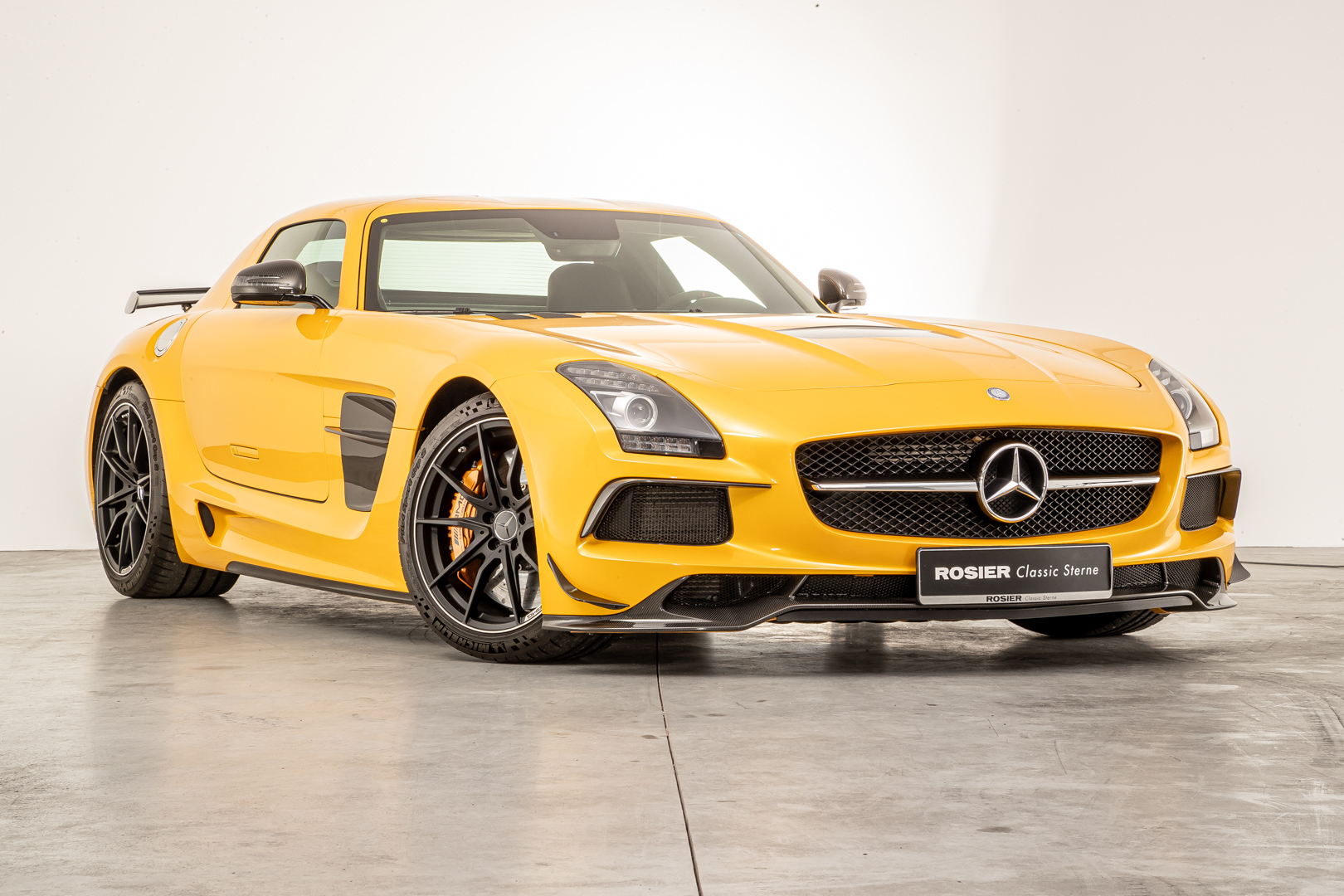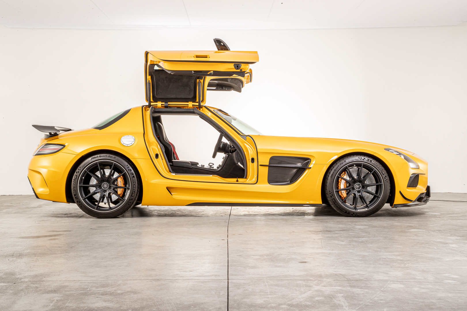 We are pleased to offer you this Black Series rarity. In the sensational AMG special color "AMG Solarbeam Metallic", this SLS Black Series makes a powerful impression even when stationary. At the latest when starting the 6.3-liter naturally aspirated engine, the full splendor of this exceptional athlete from the house of AMG is revealed. Experience pure goose bumps with this well-kept exceptional specimen. As part of an Italian collection in the metropolis of Bologna, this bolide "made in Germany" certainly caused many envious glances, even among the sports car spoiled Italians. Subsequently, the vehicle ended up in German collector's hands and delighted its total of 3 previous owners.