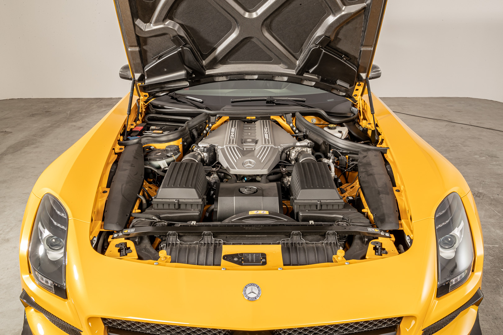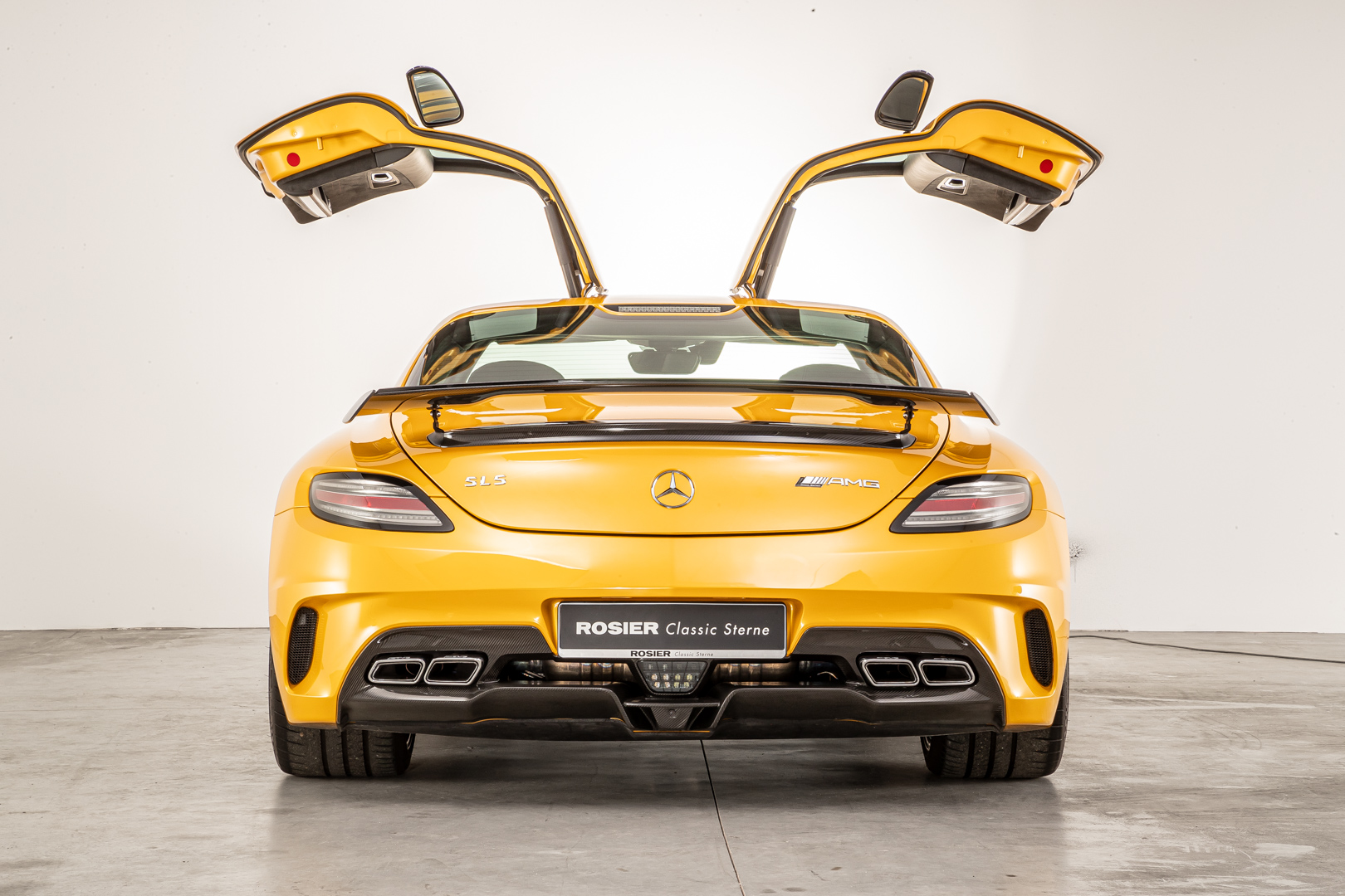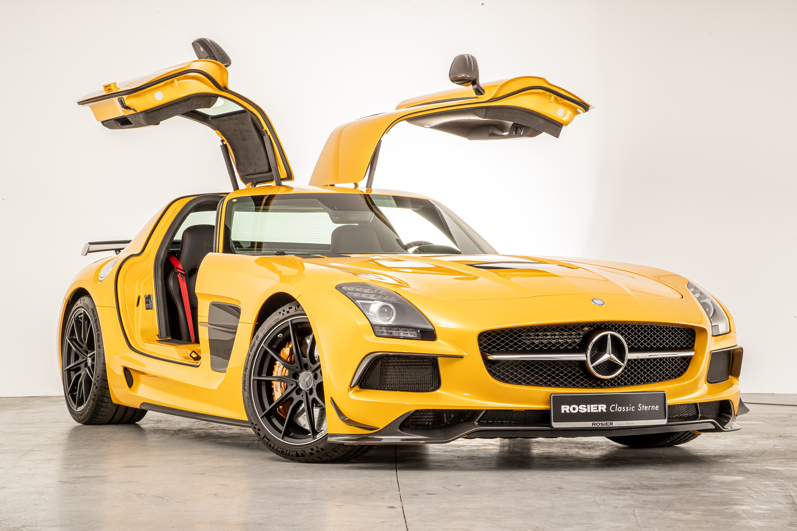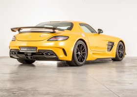 We are pleased to offer you this Black Series rarity. In the sensational AMG special color "AMG Solarbeam Metallic", this SLS Black Series makes a powerful impression even when stationary. At the latest when starting the 6.3-liter naturally aspirated engine, the full splendor of this exceptional athlete from the house of AMG is revealed. Experience pure goose bumps with this well-kept exceptional specimen. As part of an Italian collection in the metropolis of Bologna, this bolide "made in Germany" certainly caused many envious glances, even among the sports car spoiled Italians. Subsequently, the vehicle ended up in German collector's hands and delighted its total of 3 previous owners.