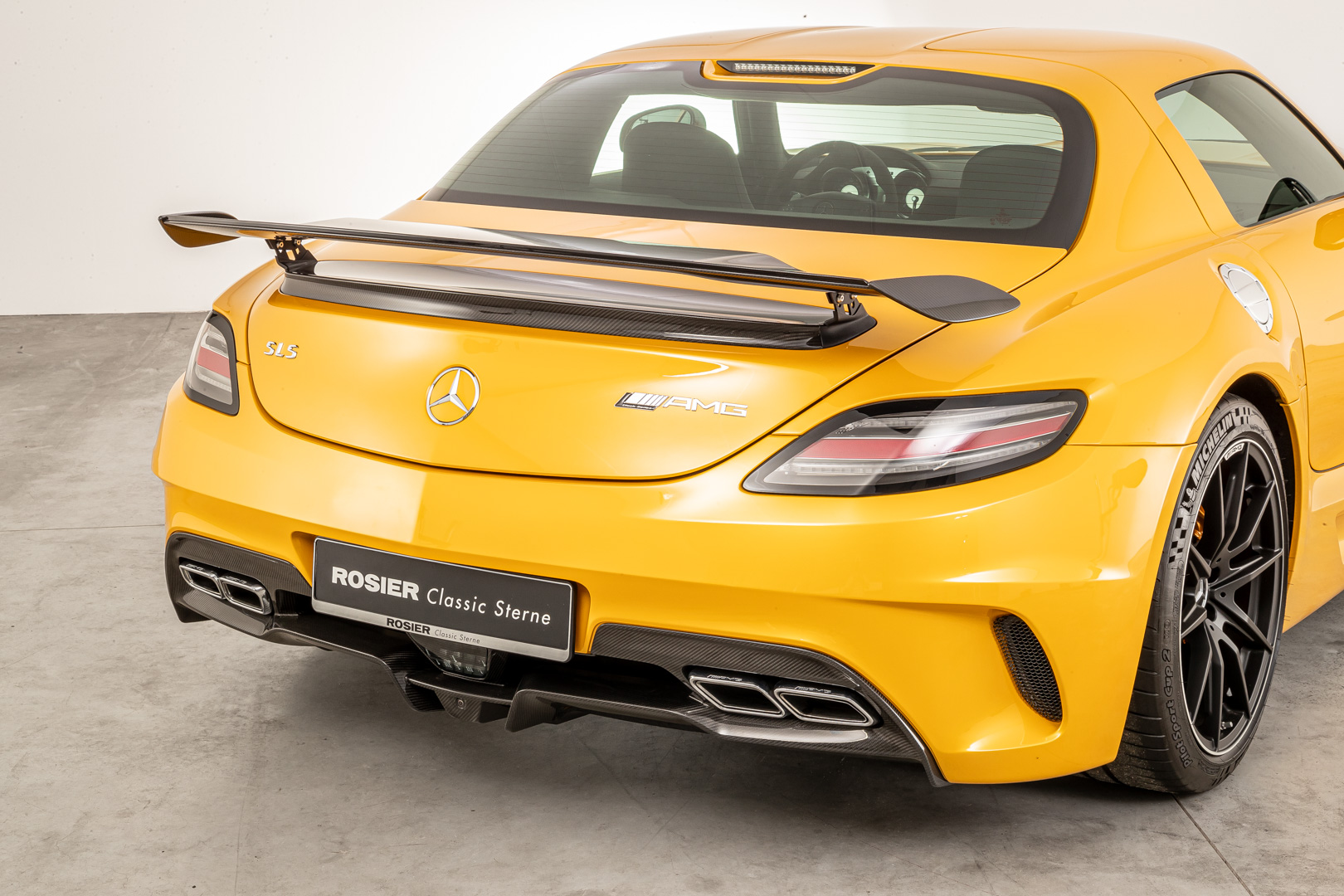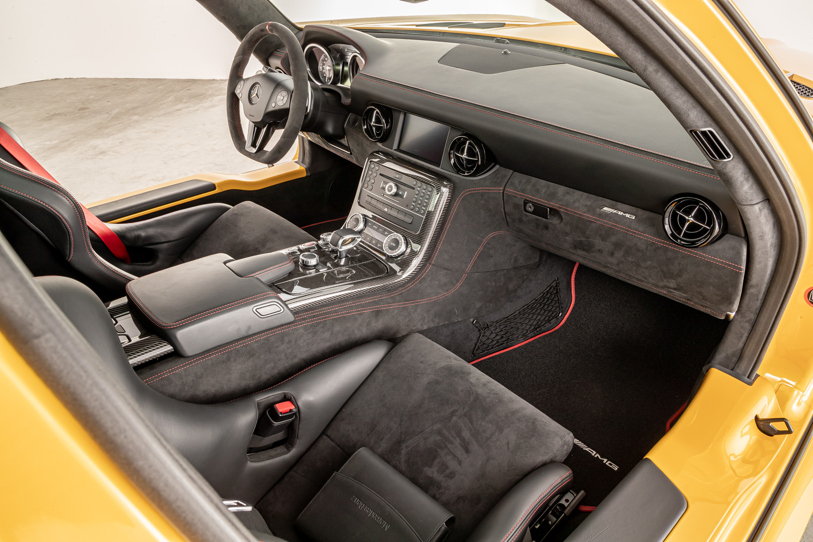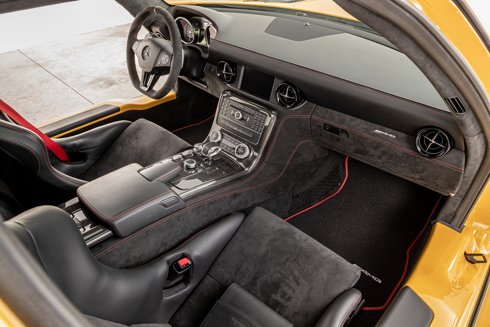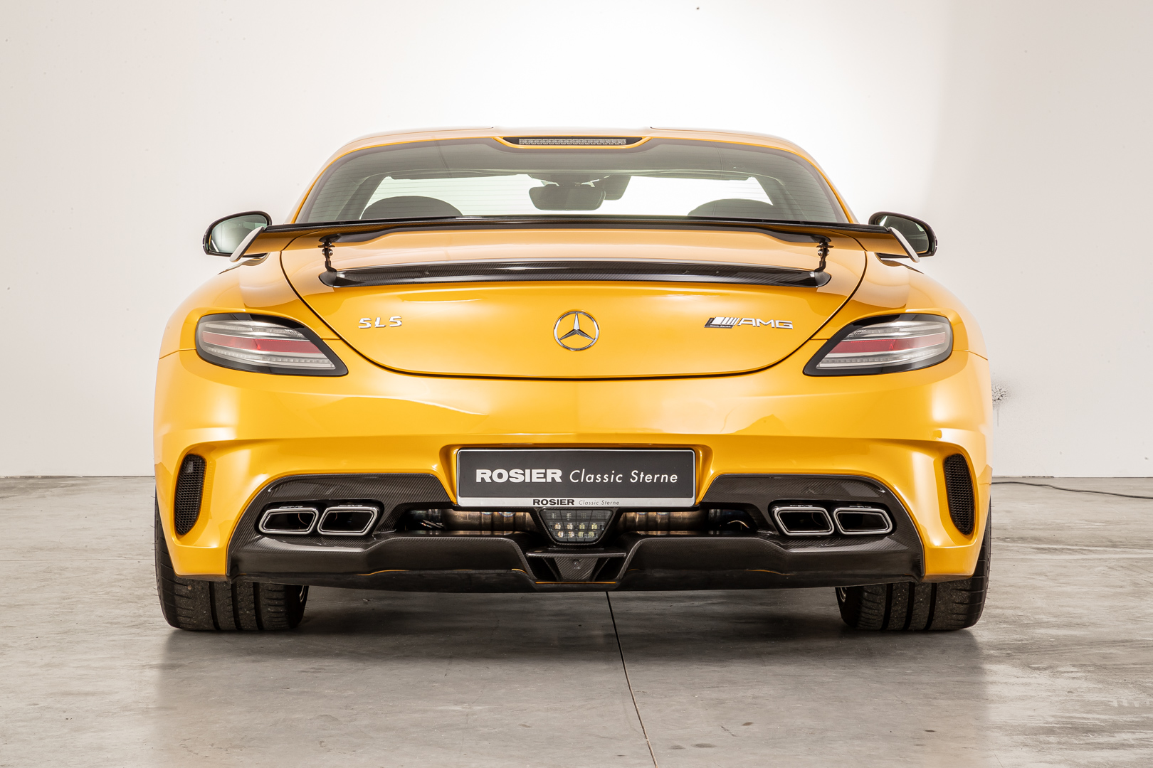 We are pleased to offer you this Black Series rarity. In the sensational AMG special color "AMG Solarbeam Metallic", this SLS Black Series makes a powerful impression even when stationary. At the latest when starting the 6.3-liter naturally aspirated engine, the full splendor of this exceptional athlete from the house of AMG is revealed. Experience pure goose bumps with this well-kept exceptional specimen. As part of an Italian collection in the metropolis of Bologna, this bolide "made in Germany" certainly caused many envious glances, even among the sports car spoiled Italians. Subsequently, the vehicle ended up in German collector's hands and delighted its total of 3 previous owners.