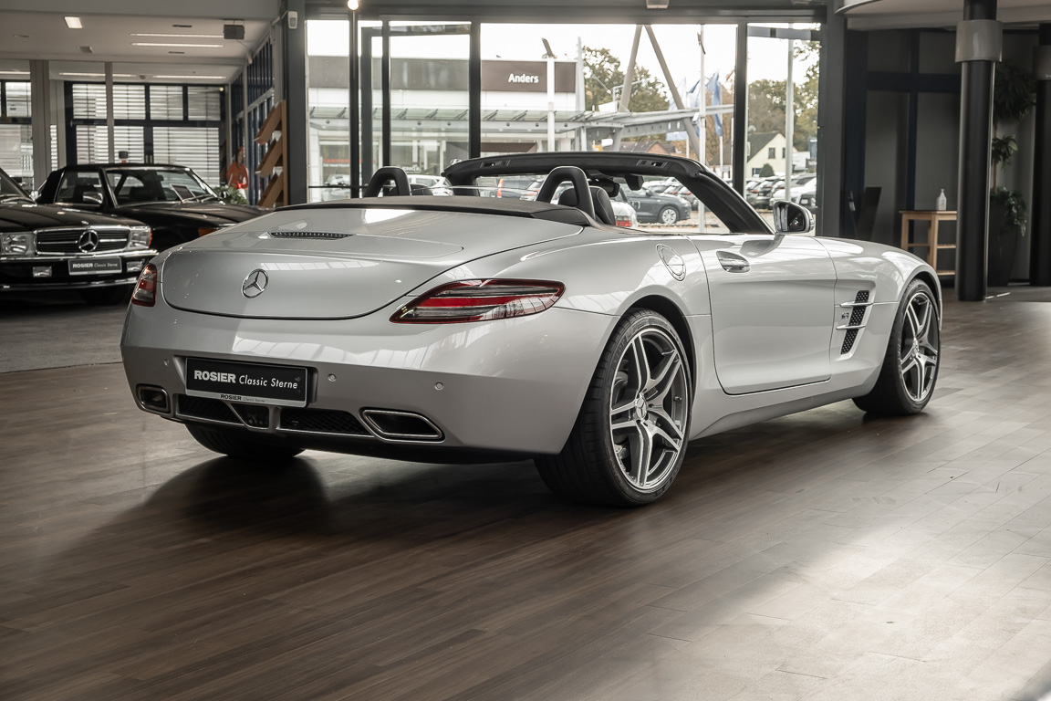 Just arrived: SLS AMG Roadster in Iridium Silver Metallic from 1st hand, 6,120 km in absolutely new car condition, well maintained and unused.