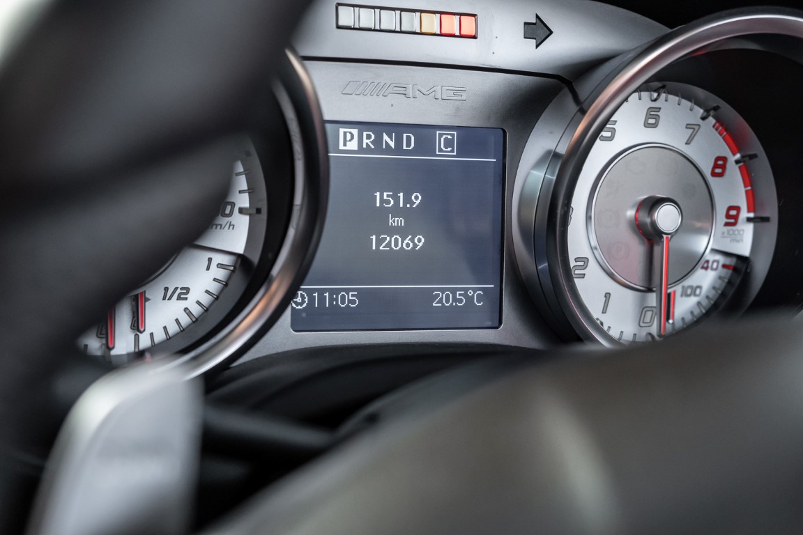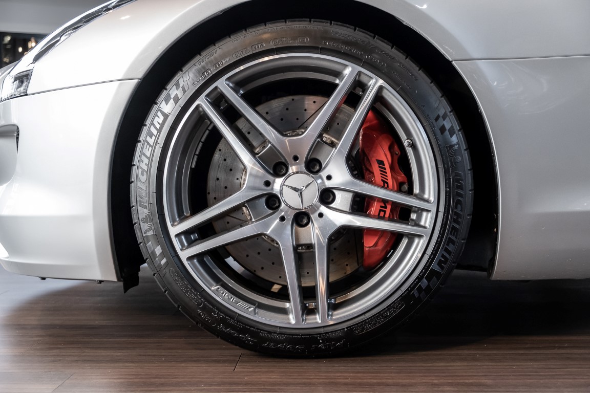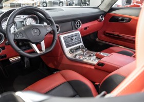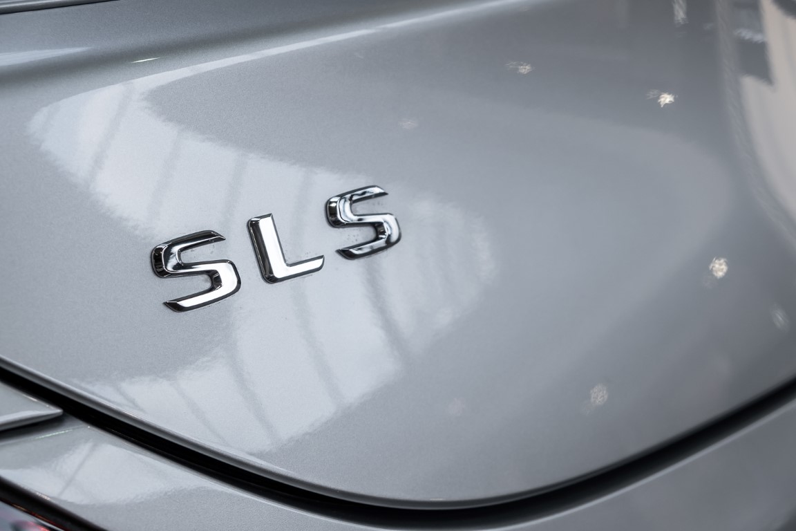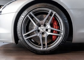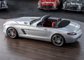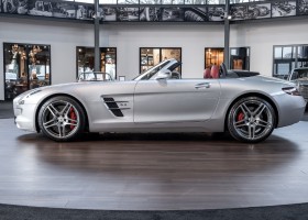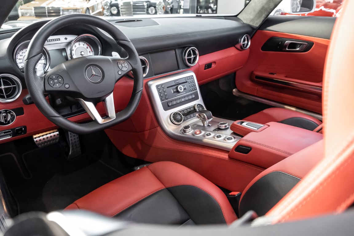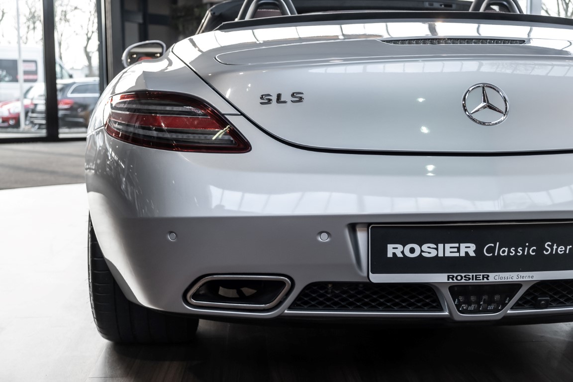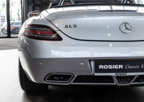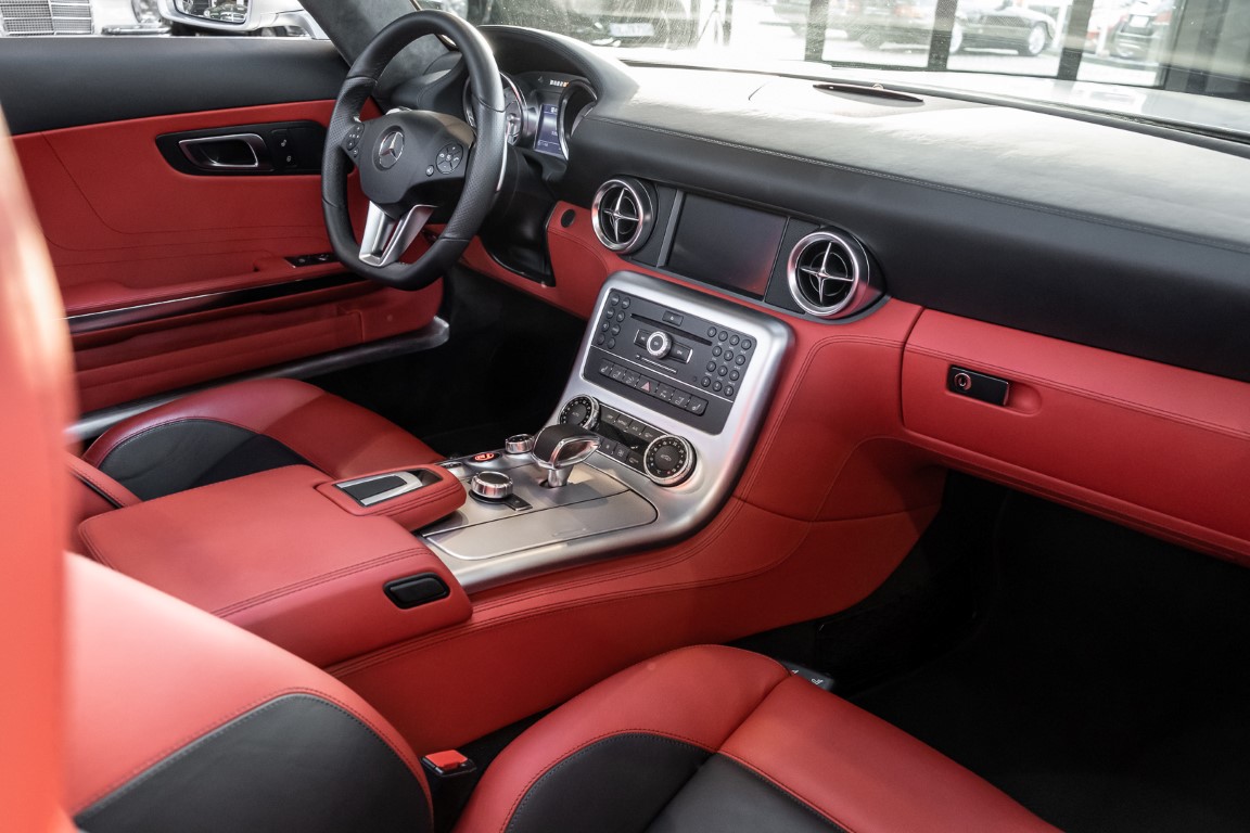 This wonderful SLS AMG Roadster in the classic-sporty combination "Iridium Silver Metallic" with red AMG Exclusive Leather is literally a Silver Arrow.