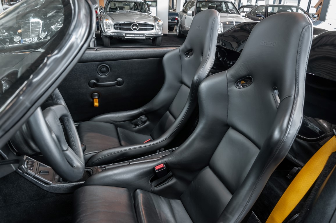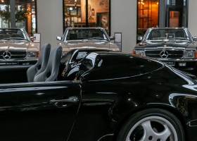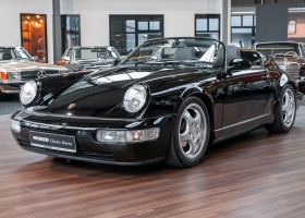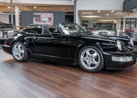 With a total mileage of about 85,000 km, the vehicle is in a beautiful, original condition. The noble appearance in deep black lacquer in combination with the black leather interior makes the vehicle already today a breathtaking youngtimer and a real classic.